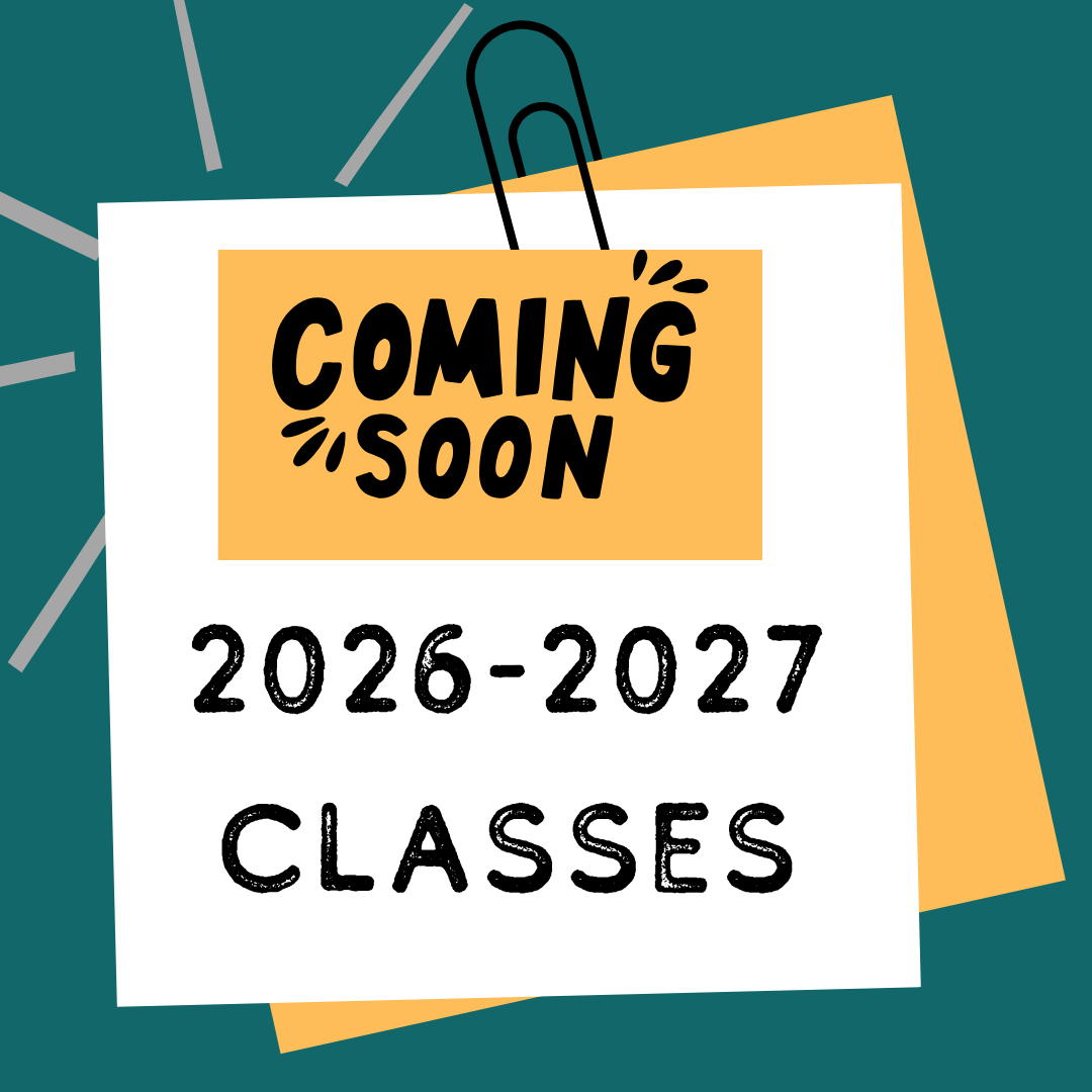 Feel free to click on our link for 2025-2026 Class Schedule to see more of the classes available this coming year. If you click on the individual class you can see more information about that class and what tuition costs would be. All of our in person classes meet on Mondays but some of our online classes meet other days.